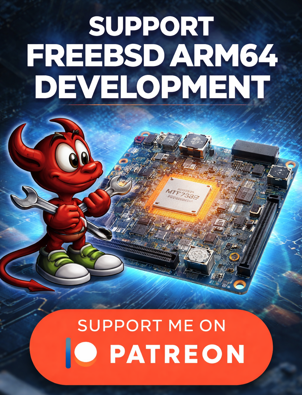 FreeBSD and open-source projects thrive on contributors and community support. Without sustainable backing, progress on less visible but essential parts — like drivers and port maintenance — becomes hard to keep up. Your support on Patreon means I can focus more on development, testing, and sharing more content with you all. (https://www.patreon.com/c/bsdworld/)